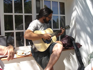 • Marco playing my guitar, ho hum, better than me