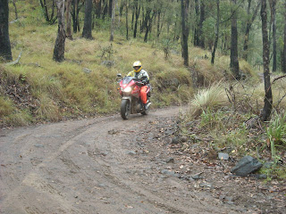 Met these 2 through Horizonsunlimited web site, we did a rather longer ride out with these 2, over 400km mostly on trails and back roads in the pissin rain, I thought it was supposed to be hot here!!!!! we met up at 8.30am( I know seems unlikely for us but its true) and headed off into the rain forest and boy did it live upto its name, Both guys were on road bikes with road tyres and we did some great trails, they did really well on road tyres, I was slipping all over the place on Trail tyres, I can,t list everywhere we went cos I havn,t got a clue all I know is it was another great day and we wound up back at Marks in Brisbane where we stopped the night and eat a homemade curry and drank a lot of beer so thanks mates for a great day out.Mark has given us a load of maps with detailed instructions of great roads, we are heading off tomorrow to head down to Sidney and surrounding ares and probably going to a bike rally that Mark told us about in Cambera, Pics to follow